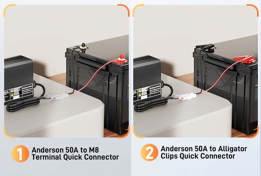Anderson 50A auf M8-Anschluss, Batterieanschluss, Anderson 50A auf Alligator-Batterie-Stromübertragungsanschluss, 20A 30A 40A 50A 30 cm Elektrokabel